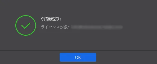 登録成功画面が表示されたら、ライセンス登録完了です。